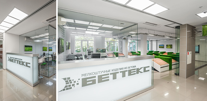 Офис компании «Беттекс» - наглядный пример того, что в багаже NAYADA достаточно эффективных и экономически выгодных решений для организации офисного пространства компаний любого уровня.
